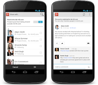 Next, you can now create restricted posts from the Google+ app on Android. Restricted posts can’t be shared outside your organization, so your private conversations are only visible to your coworkers.
