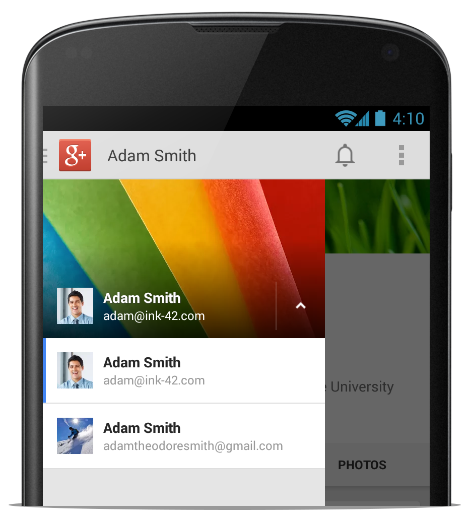 First, the Google+ app on Android now supports multiple accounts, so you can log in to both a personal and a work account, and easily switch between them as you can in other apps such as Gmail.